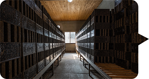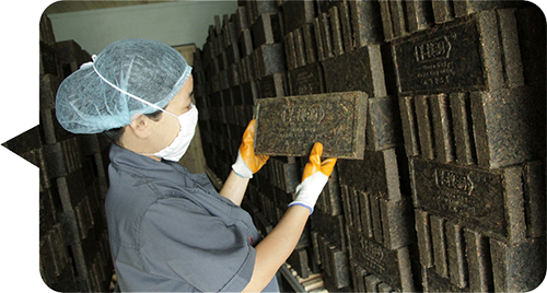 陈化:当茶坯颜色呈赫红色后归大堆。挖井字形通道通风干燥,让茶坯自然陈化。