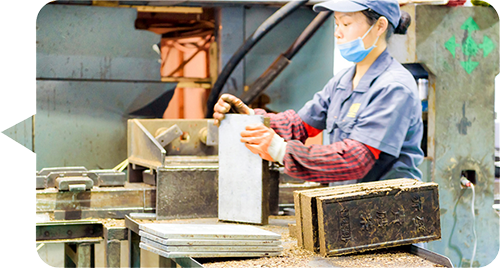 紧压:按比例将老青茶汽蒸。将蒸制后的里茶和面茶分别装入斗模中,紧盖好面、底板。
